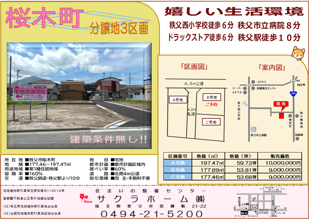 所在地 埼玉県秩父市桜木町  桜木町分譲地